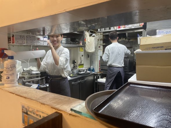 「そうですね。わたしは最初売り子から入ったんですけど、徐々に調理も担当したり、配達したり、何でもやっています。」