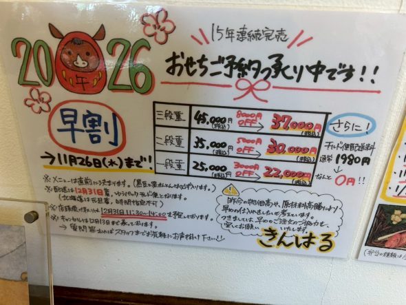 毎年すぐ売り切れてしまう『きんはる』のおせちにも注目!